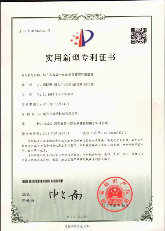 鉆孔和起煤一體的高 效整煤開(kāi)采裝置