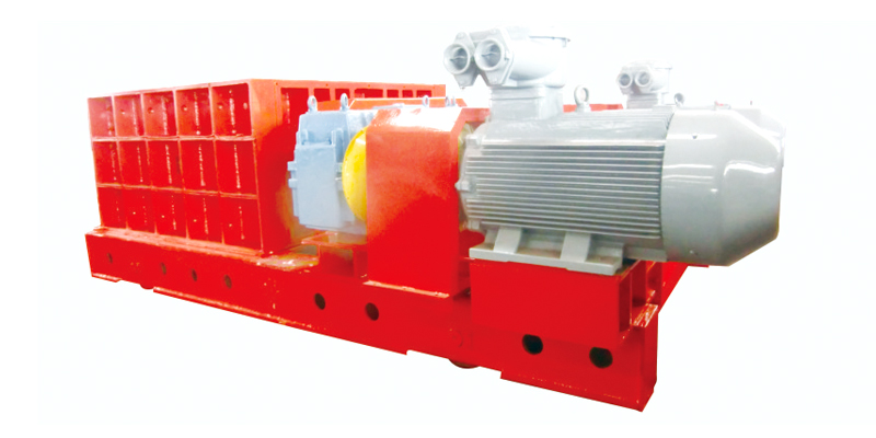 破碎機(jī)由兩臺電動機(jī)將動力經(jīng)減速器減速后分別驅(qū)動兩齒輥相向旋轉(zhuǎn),當(dāng)物料從入料口進(jìn)入機(jī)體破碎腔時,帶有螺旋齒牙的兩齒輥首先將物料篩分,符合要求的物料通過齒間進(jìn)入排料溜槽。大塊物料受齒輥齒牙的劈裂、剪切,